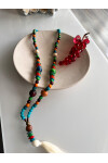 Turkuaz Ziko Tahta Tasarım Renkli Kolye