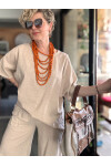 Bu takım, yaz günlerinin sıcaklığında hem şık hem de konforlu bir seçenek sunuyor. Hafif kumaşı ile ferah bir deneyim yaşarken, Vintage  detaylarıyla da zarafetinizi artırabilirsiniz. Hem günlük kullanımda hem de özel anlarda sizi her zaman şık gösterecek.