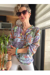 Vektör Yaprak Desen İtalyan Gömlek İndigo
