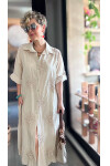 Vello İtalyan Pul Detaylı Gömlek Elbise Kap Beige