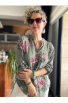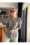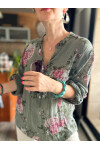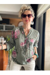Viola Gonca Gül Desen İtalyan Gömlek Haki Yeşil