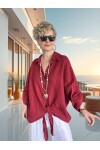Viva Önü Bağlamalı İtalyan Kesim Linen Gömlek İndian Red