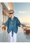 Ön kısmındaki bağlama detayı gömleğe dinamik ve bohem bir karakter kazandırır.