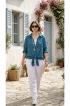 Ön kısmındaki bağlama detayı gömleğe dinamik ve bohem bir karakter kazandırır.